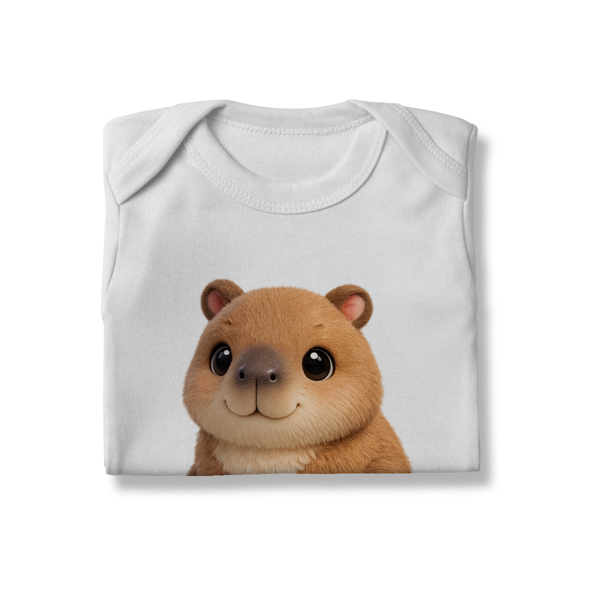 A estampa traz uma capivara adorável, com traços suaves e expressão carinhosa, transmitindo ternura e alegria. É aquele tipo de peça que arranca sorrisos e deixa qualquer look infantil ainda mais especial.