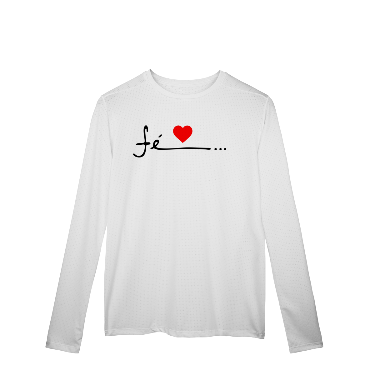 Uma camisa manga longa sport dry UV com estampa com frase “fé” é uma peça de roupa esportiva projetada para conforto, desempenho e estilo, combinando tecnologia têxtil com um visual inspirador. Aqui está uma descrição detalhada: